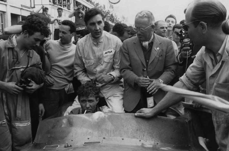 In the race, Stirling Moss played the ‘hare’ in a sister car and led, only for his DBR1 to break before 9pm. The race was now Ferrari’s to lose – and they obliged. Belgian ace Olivier Gendebien retired the leading Testa Rossa at 11am with overheating and dropping oil pressure.