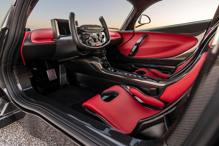 Hennessey also focused on stripping out the track-honed model to make it the lightest Venom F5 variant yet. It tips the scales below its 1360kg sibling, although the firm wouldn’t confirm by how much or what was changed to make it lighter.