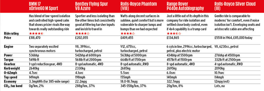 Quick links: Explaining ride comfort – Rolls-Royce Silver Cloud – Rolls-Royce Phantom – BMW i7 – Bentley Flying Spur – Range Rover – Noise levels – Results – Final verdict – Specs