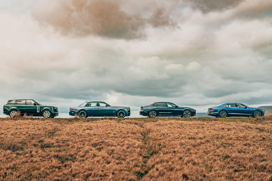 How could we decline? The standard-bearers we assembled, in descending order of price, were the recently updated Rolls-Royce Phantom VIII, Bentley Flying Spur V8 Azure, Range Rover P440e Autobiography and BMW i7 xDrive60 M Sport.