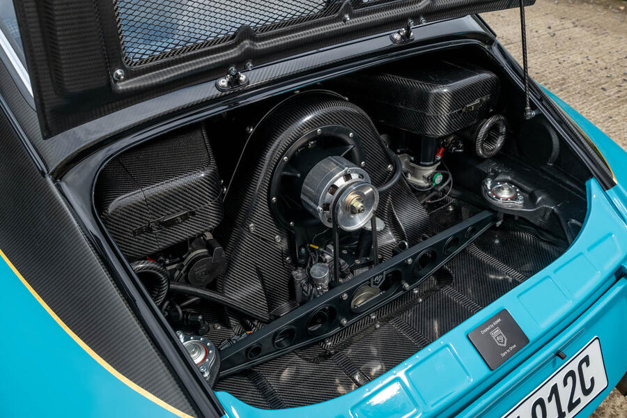 This new customer car is a good showcase as it features pretty much the works. The steel shell is restored but all outer panels, including roof and wings, are carbon fibre, and the engine is Kamm’s latest iteration of its air-cooled 2.0-litre four-pot, making 182bhp at 6800rpm and 180lb ft at 4300rpm. Kamm’s preference is to start with a shell that’s straight if rusty rather than accident bent. But these are all 1965-1968 cars so to an extent they take what they’re given.