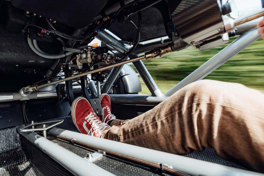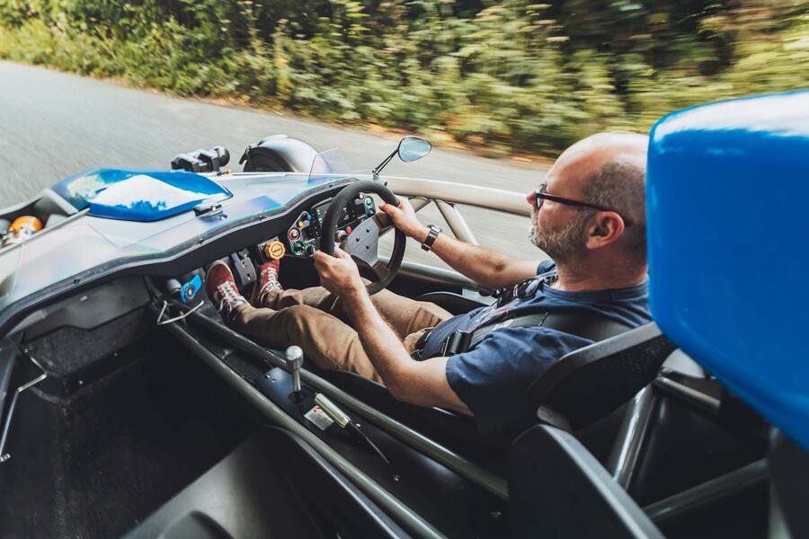 The Atom 1 had a 1.8-litre Rover K-series engine mounted directly to the chassis. And while it’s a good, lightweight, responsive engine, it’s a bit rorty and its every vibration directs back through the chassis and into these unpadded seats. Throttle response is light – actually the pedal is a bit too light and responsive – and, while you get back what you put in, you don’t have to put in very much to get it revving.