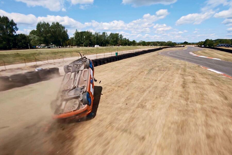 High-speed crashes were carried out on a short stretch of runway, with low-speed impacts taking place on an area to the side. There were 24 crash cars, most of them family hatches that had been seized by the police or were the subject of court orders.